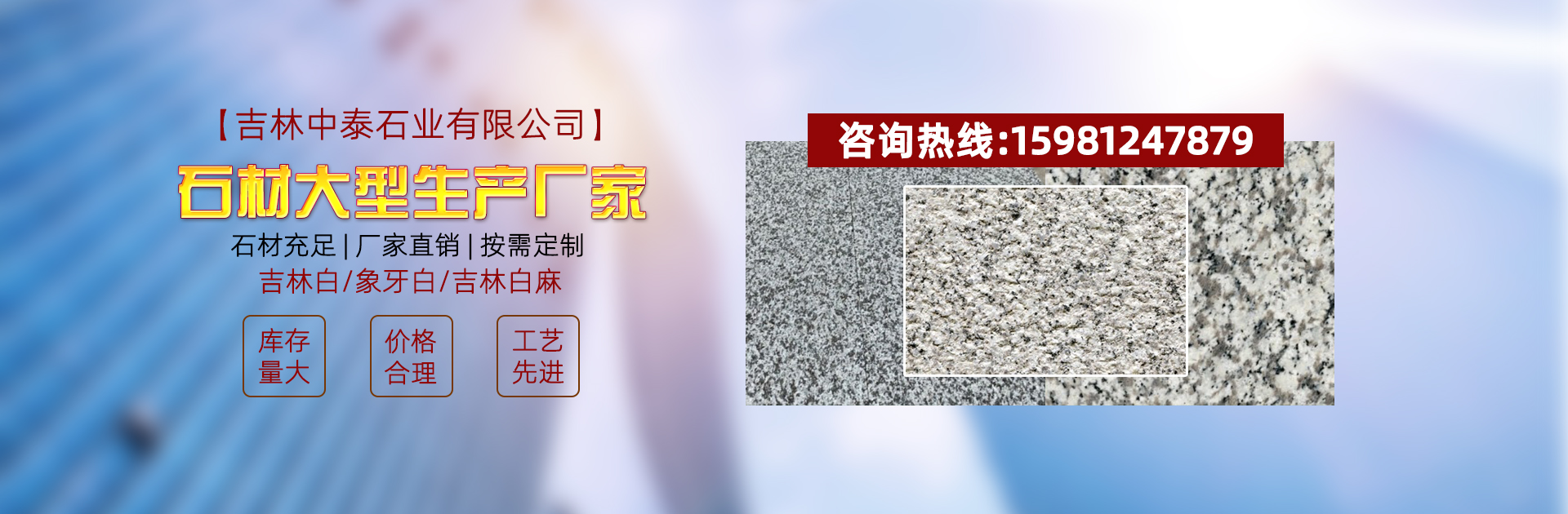 吉林中泰石業(yè)有限公司位于吉林省蛟河市天崗鎮(zhèn)。自創(chuàng)立之初,即定位于新型綠色環(huán)保石材生產(chǎn)企業(yè)。憑借當(dāng)?shù)氐氖淖匀毁Y源優(yōu)勢,積極響應(yīng)建設(shè)東北石都的號召,大力發(fā)展石材生產(chǎn)加工能力。